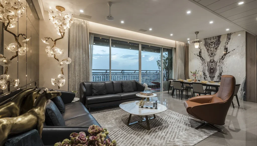 Chandak Treesourus in Malad West offers luxurious 2 and 3-BHK apartments and jodi flats, each designed to provide an unparalleled living experience. Nestled amidst 3 acres of lush greenery, this 45-storey residential complex boasts stunning, unobstructed views. The 11th floor is dedicated to world-class amenities, including a gym, infinity pool, indoor game zone, sky lounge, and cafe, while the podium parking stretches from the ground to the 10th floor. With over 20 premium amenities spanning 25,000 sq ft, Chandak Treesourus is the epitome of luxury living in Western Mumbai.